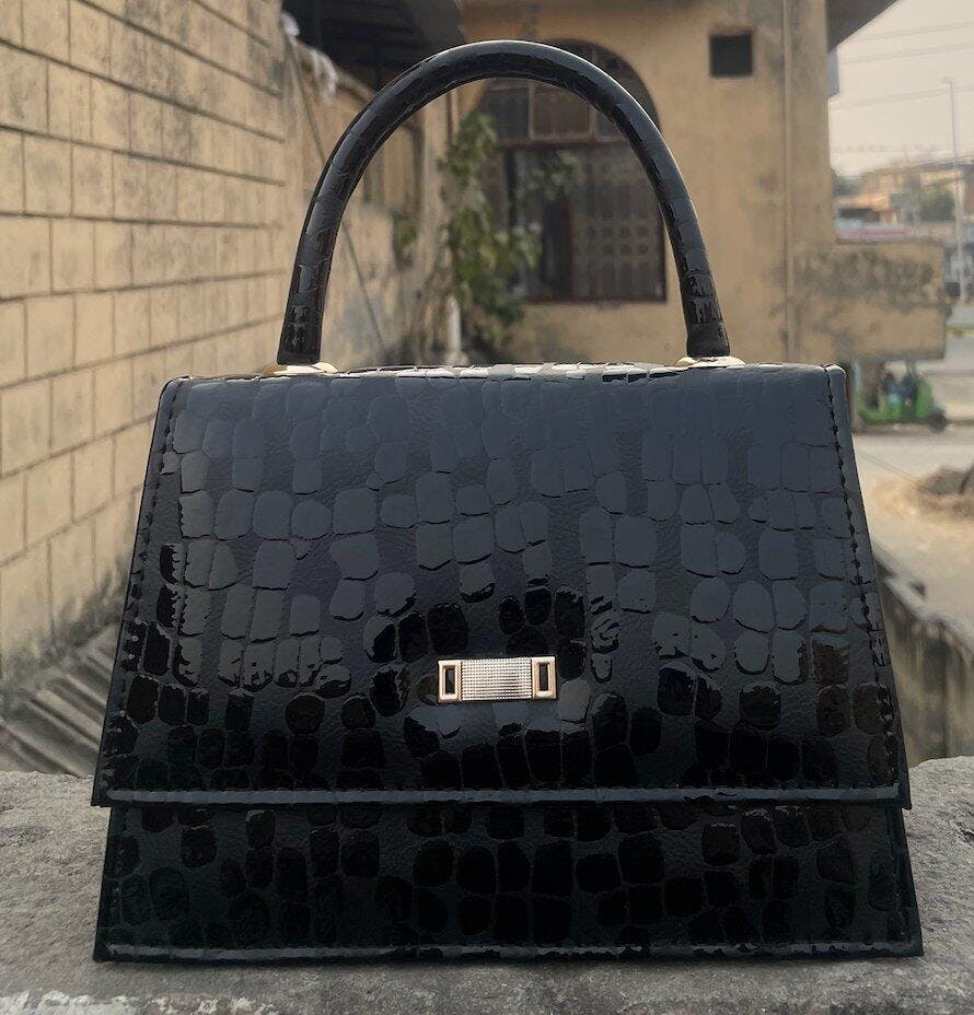 Add a touch of timeless sophistication to your look with the Lyana Hazel Bag β a structured masterpiece designed for modern elegance. Crafted with a glossy croc-textured exterior, this compact bag effortlessly blends luxury with practicality. Its minimalist gold clip accent adds just the right amount of shine, while the sturdy handle ensures comfort and confidence in every carry.